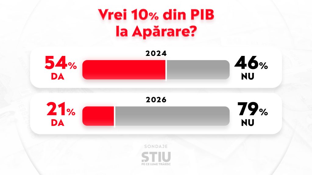 În 2024, te-am întrebat dacă vrei ca Guvernul să aloce 10% din PIB pentru Apărare. Atunci, 54% dintre respondenți au spus „DA”. Doi ani mai târziu, ți-ai schimbat votul.